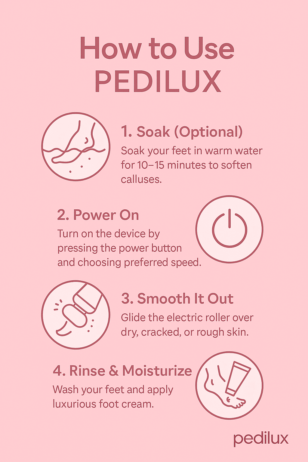 Whether you’re dealing with dry heels, cracked skin, or stubborn calluses, Pedilux helps maintain smooth and soft feet with minimal effort.